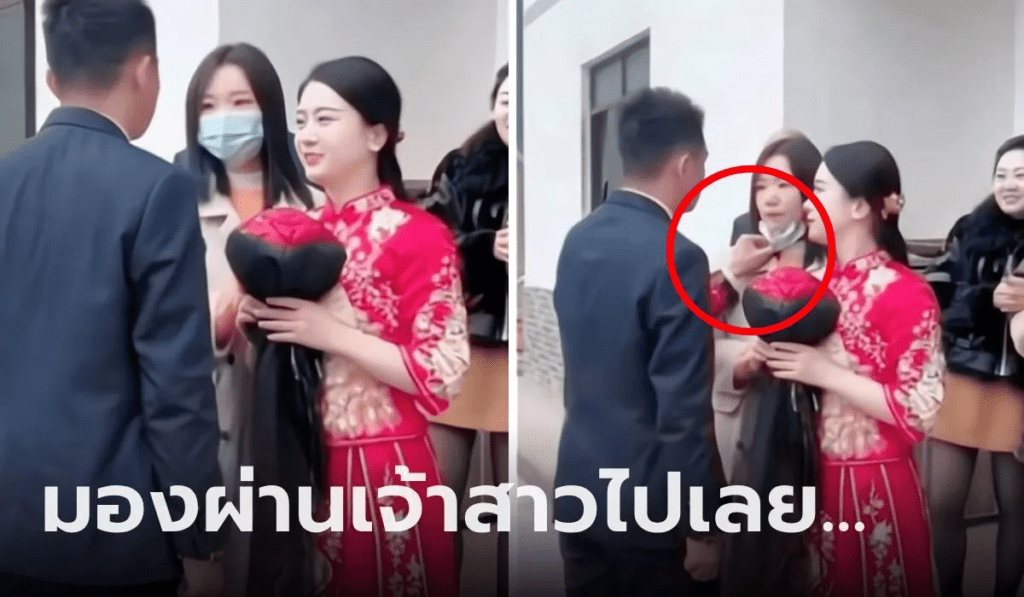 เจ้าบ่าวเก็บทรงไม่อยู่ จู่ๆ ดึงแมสก์แขกในงานลง เฉลยว่าเป็นใครสงสารเจ้าสาวเลย…